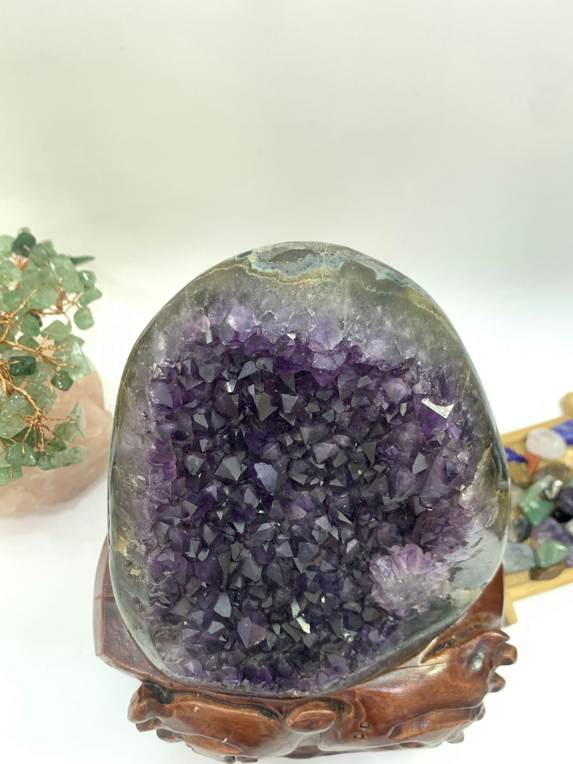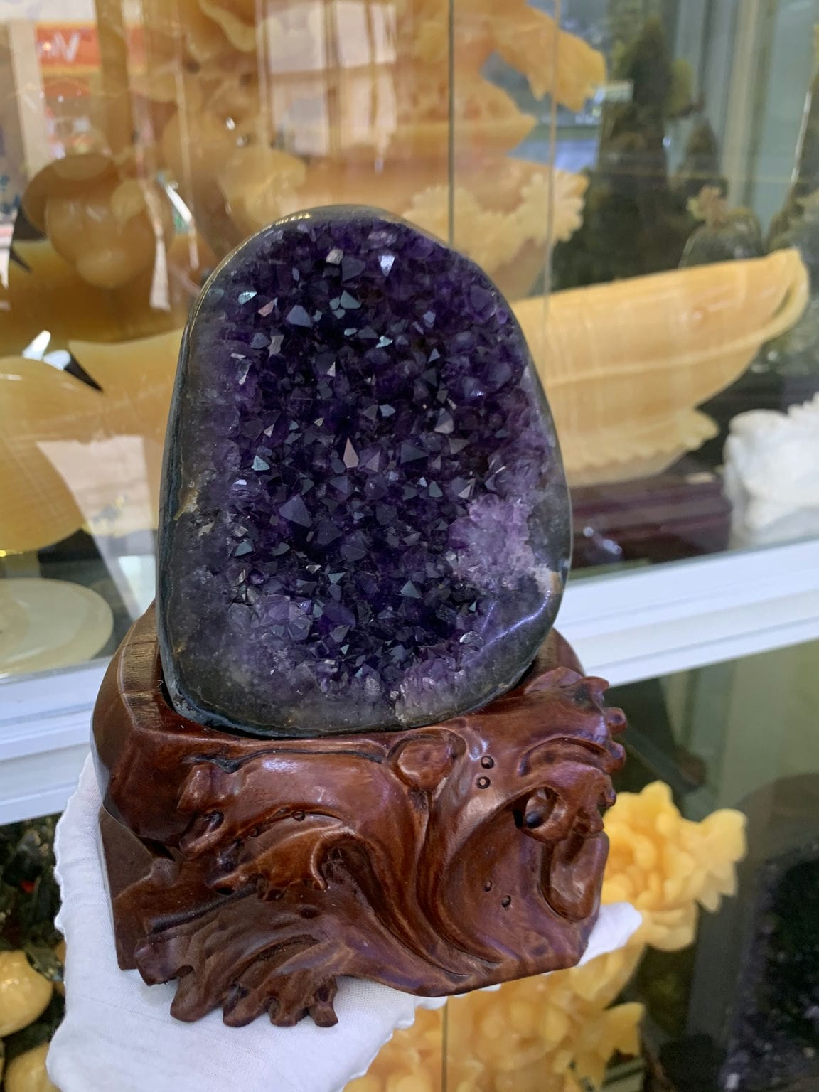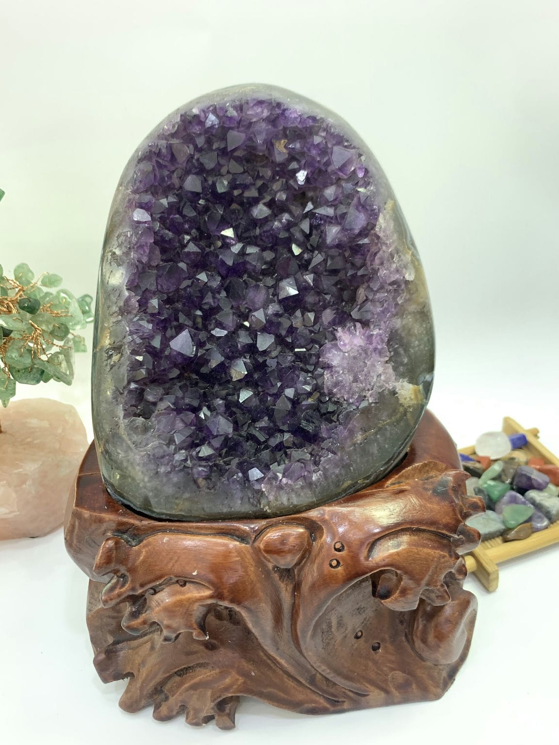 Hốc (động) Thạch anh tím có thể ngưng tụ được chủ khí của ngôi nhà, để đại được công hiệu tụ tài khí, tụ vượng khí. Nếu đặt sau bàn của giám đốc có thể giúp hóa giải xung đột, công việc tiến triển thuận lợi; đặt nó vào đầu giường có thể chữa trị được chứng suy nhược thần kinh, mất ngủ; nó cũng có tác dụng chữa trị các bệnh tim, bệnh thận, cao huyết áp, đau đốt sống cổ. Bản thân nó là máy phát điện, không cần thiết phải tiêu tàn từ trường, làm sạch, hơn nữa đặt các vật thủy tinh khách vào trong động thạch anh có thể đạt được tác dụng bổ sung năng lượng, giúp lưu thông không khí trong nhà, đem lại nhiều may mắn cát lợi.