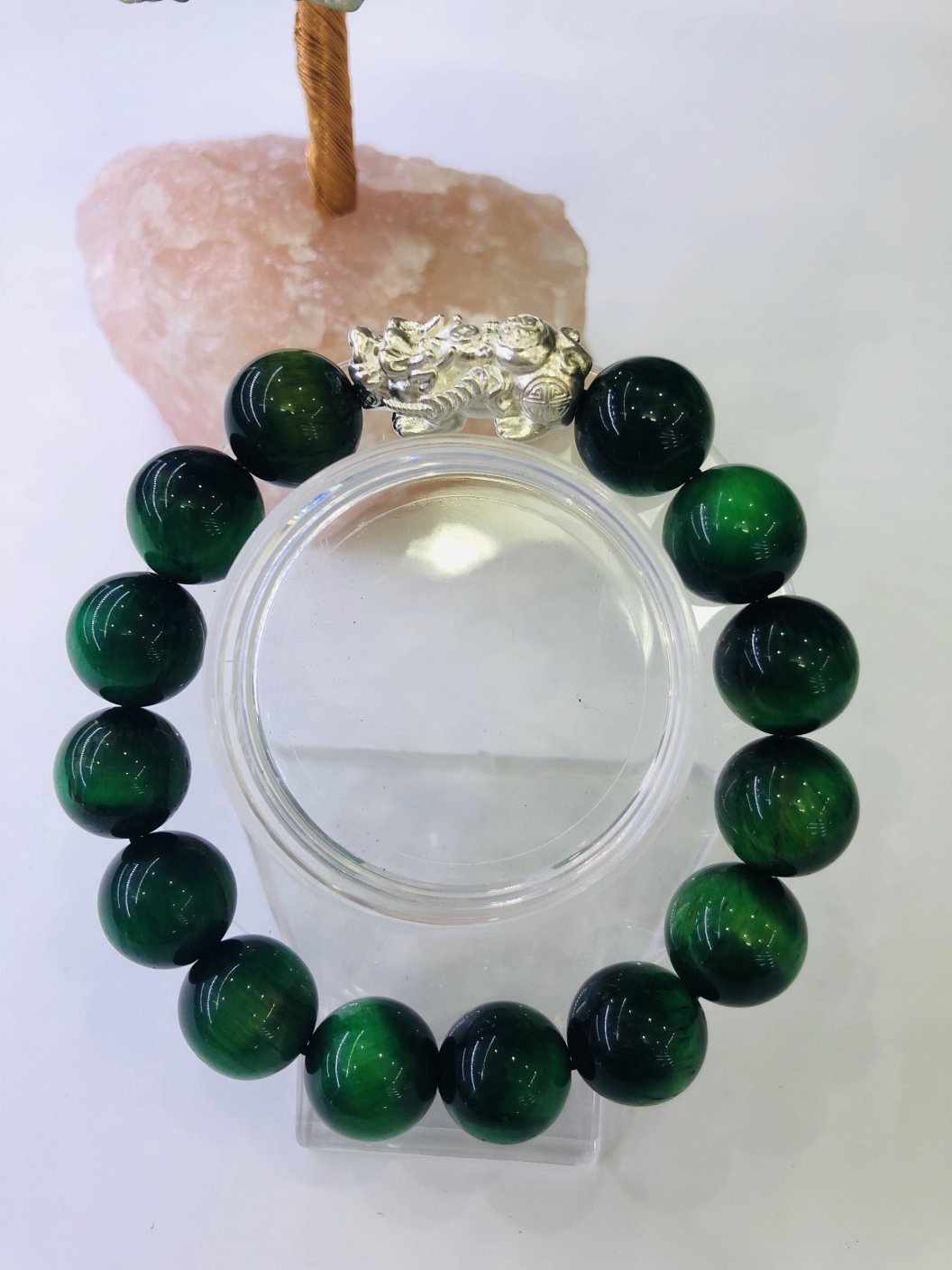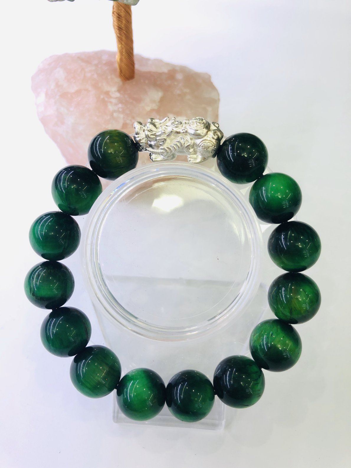 Vòng mắt hổ xanh lục VIP 14ly phối tì hưu bạc - nam