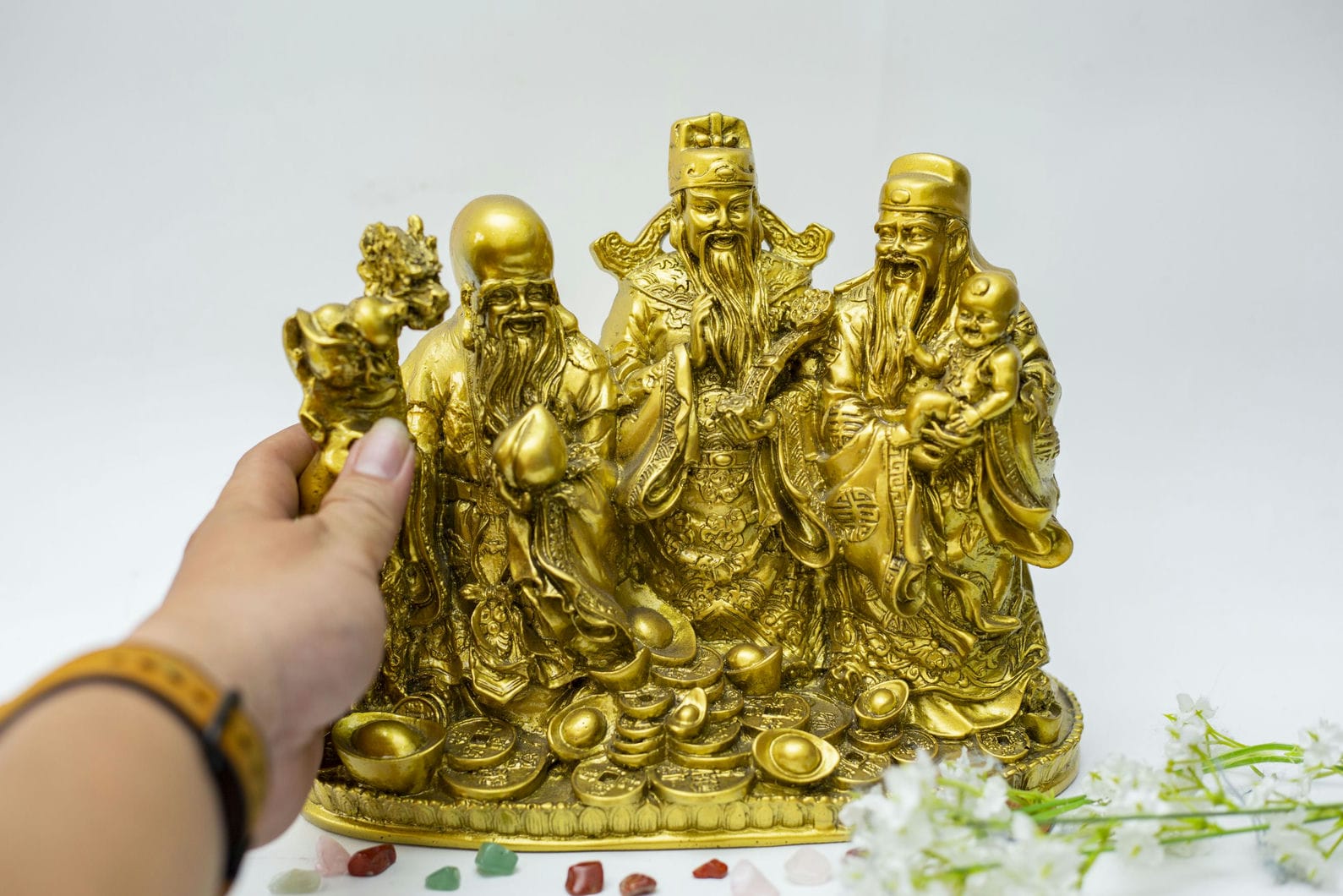 Bộ tam đa Phúc Lộc Thọ đá bột mạ đồng cao 35cm