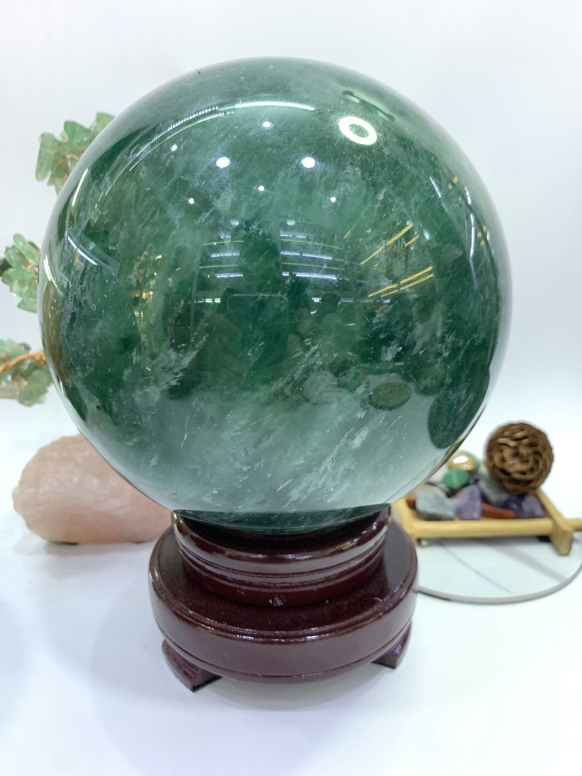 Quả cầu phong thủy đá Thạch anh Fluorit xanh;