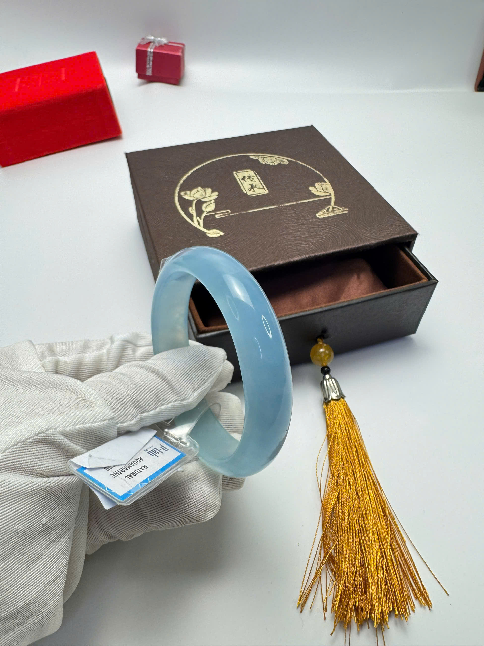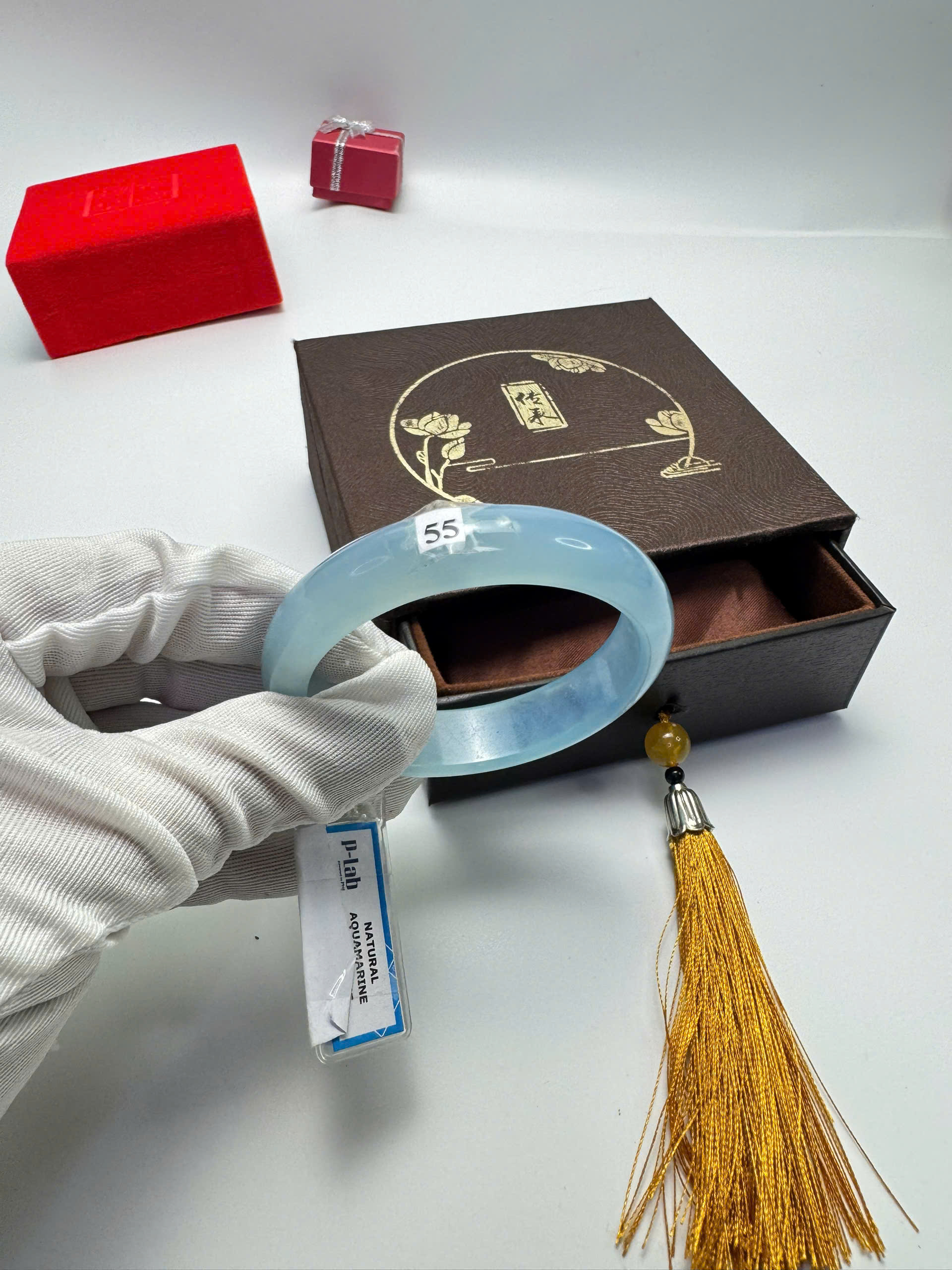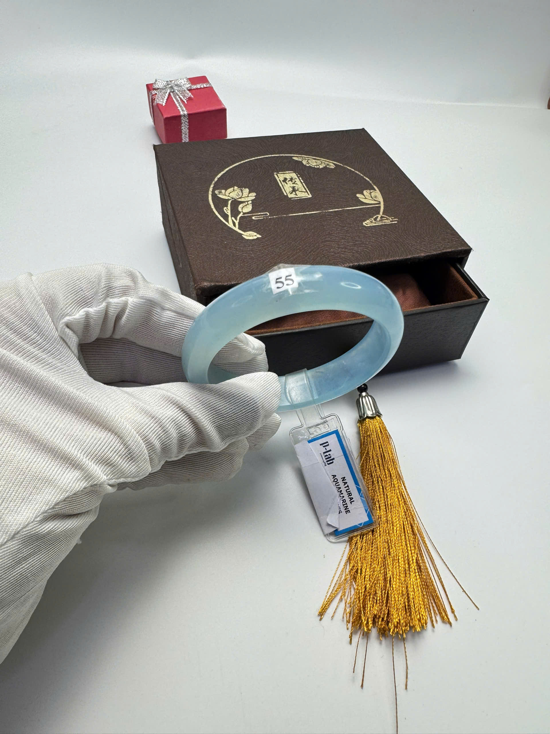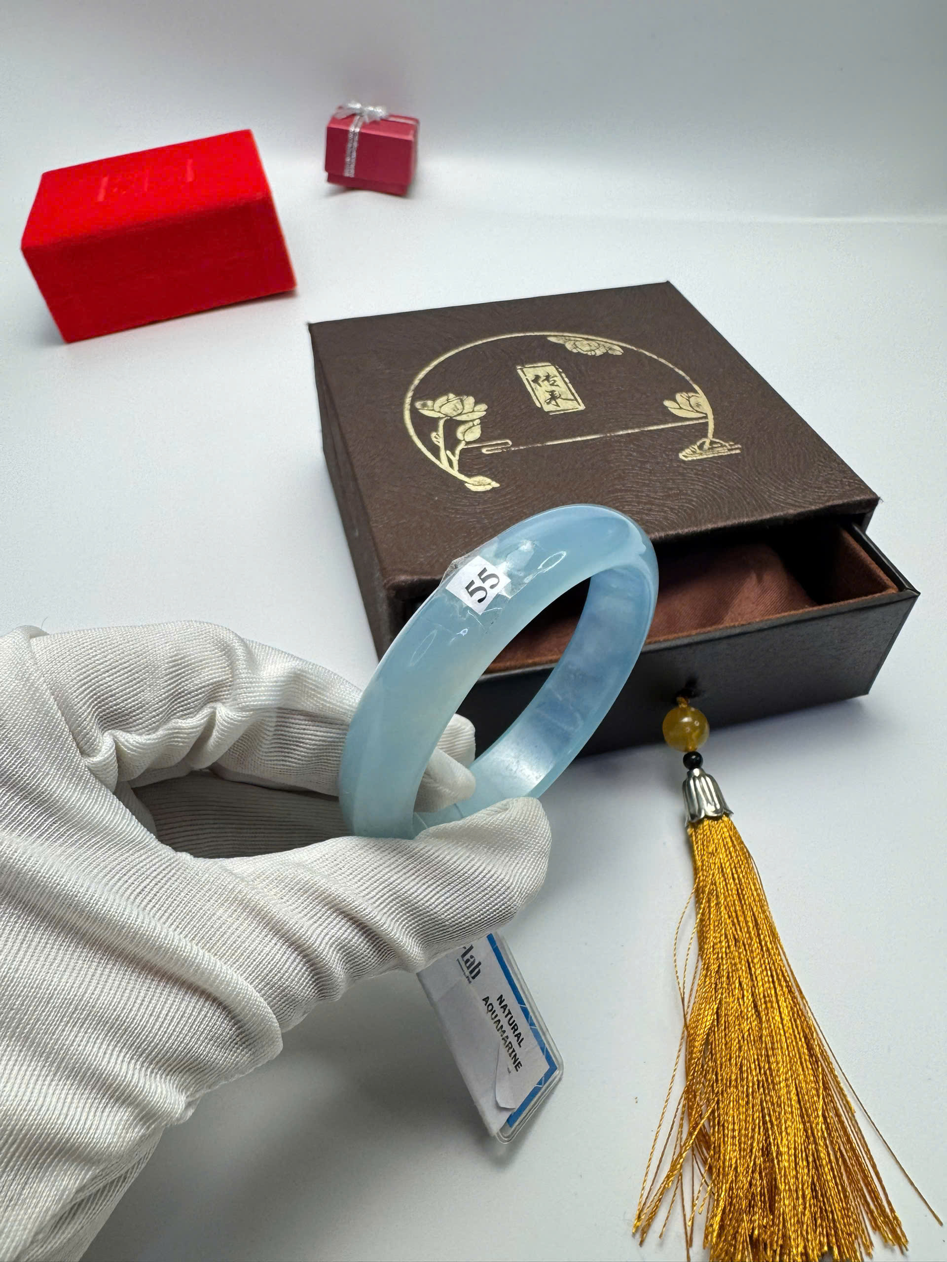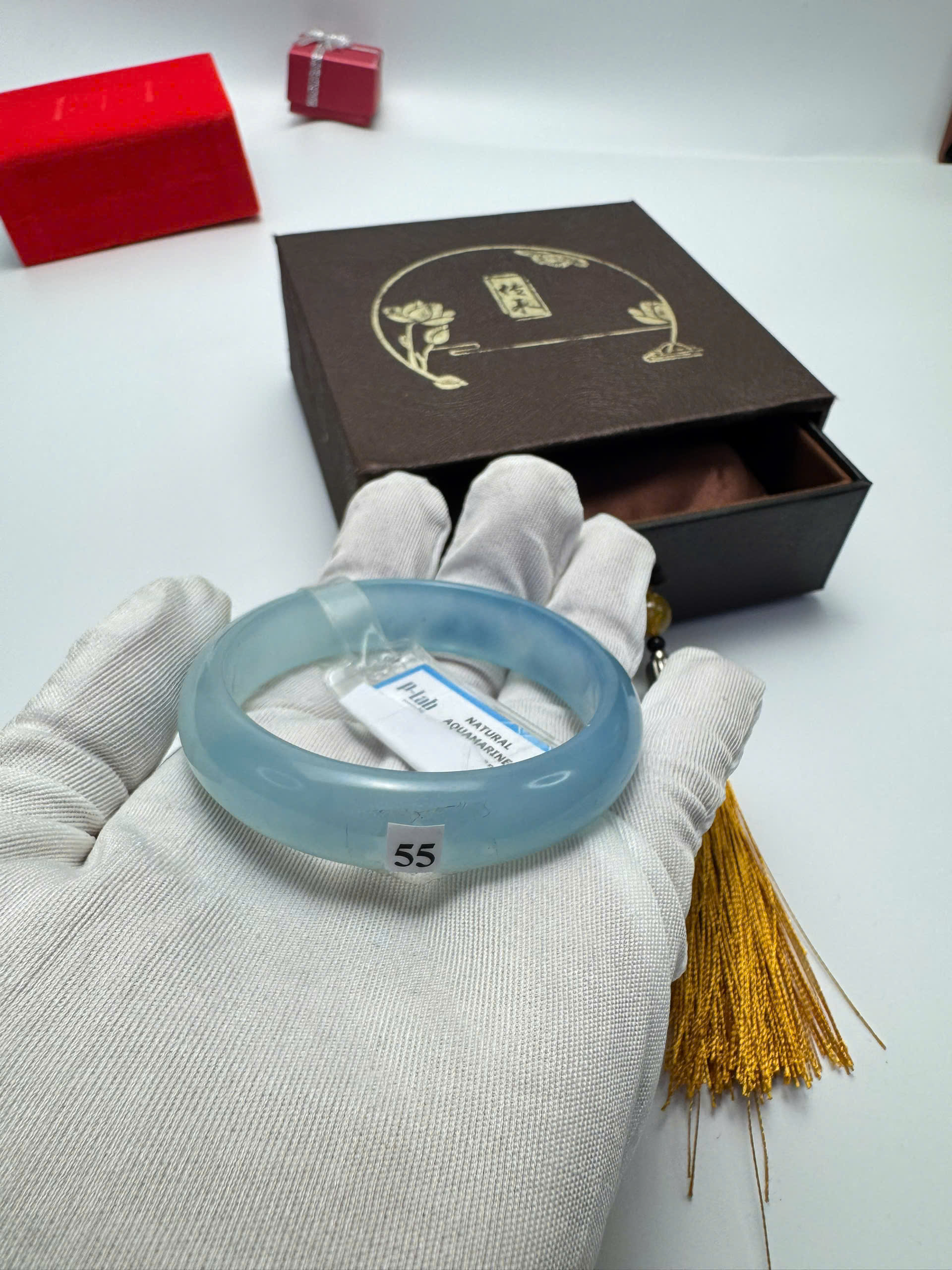 Vòng đá Aquamarine xanh dương tự nhiên HẸ 55mm