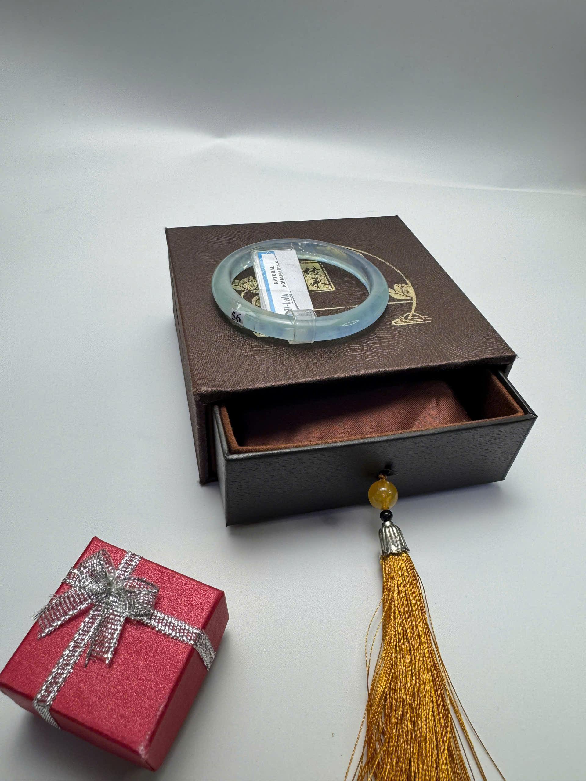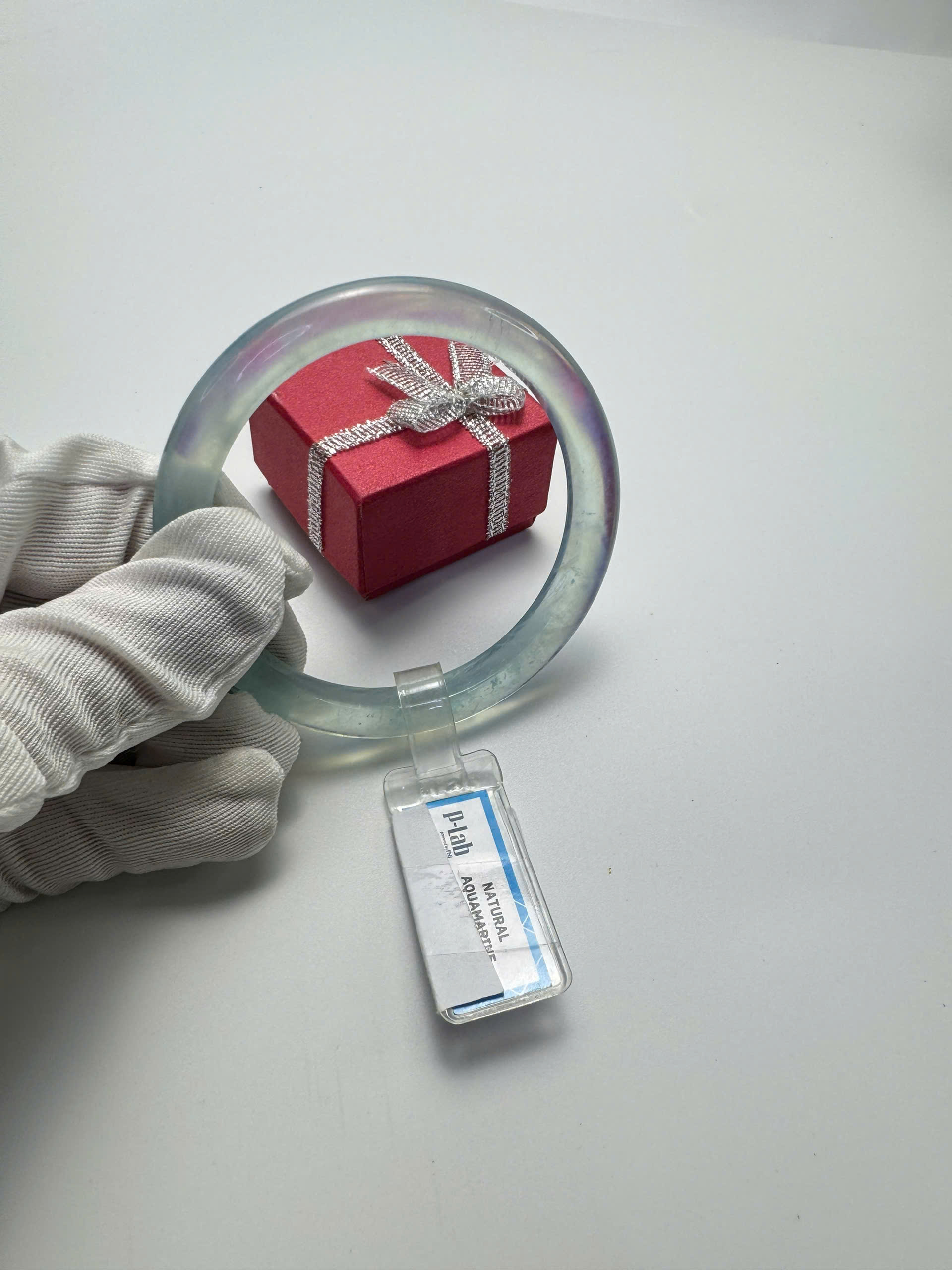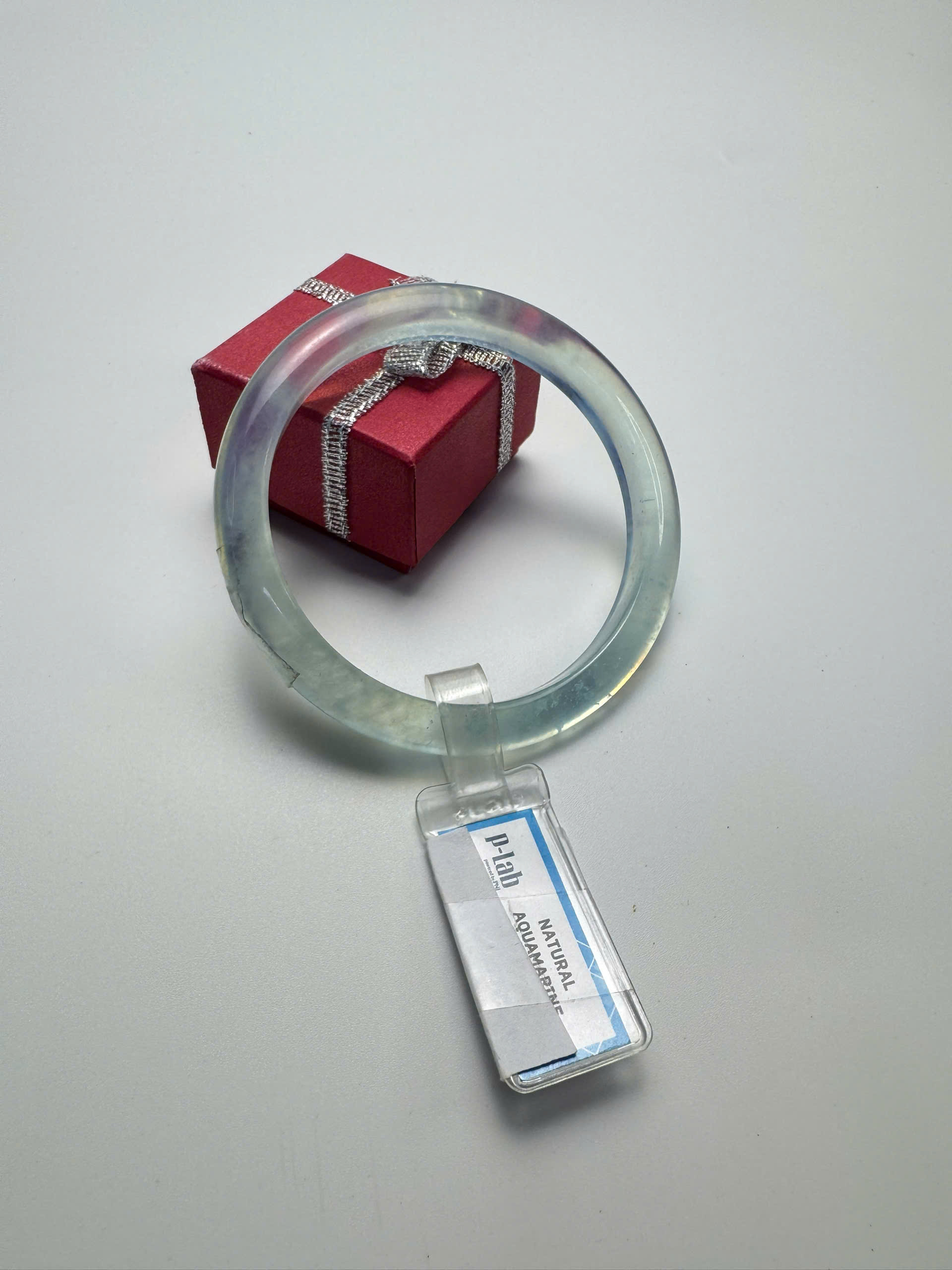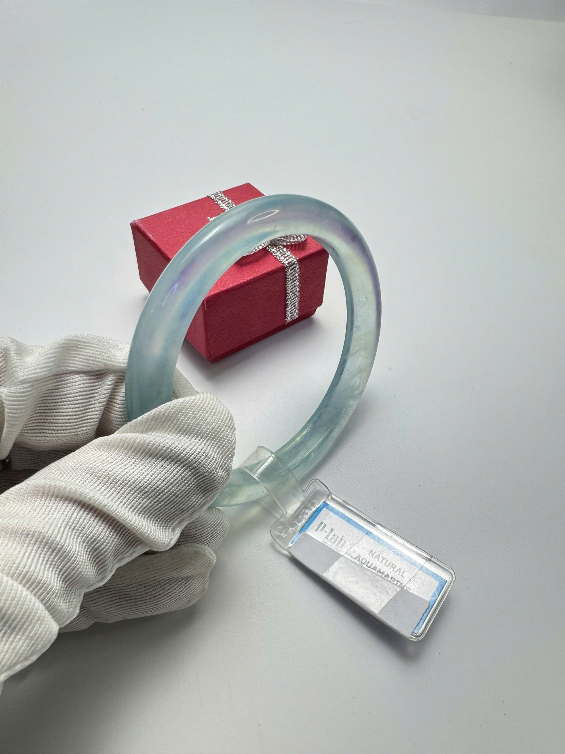 Vòng đá Aquamarine xanh dương thiên nhiên HẸ nhỏ 56mm
