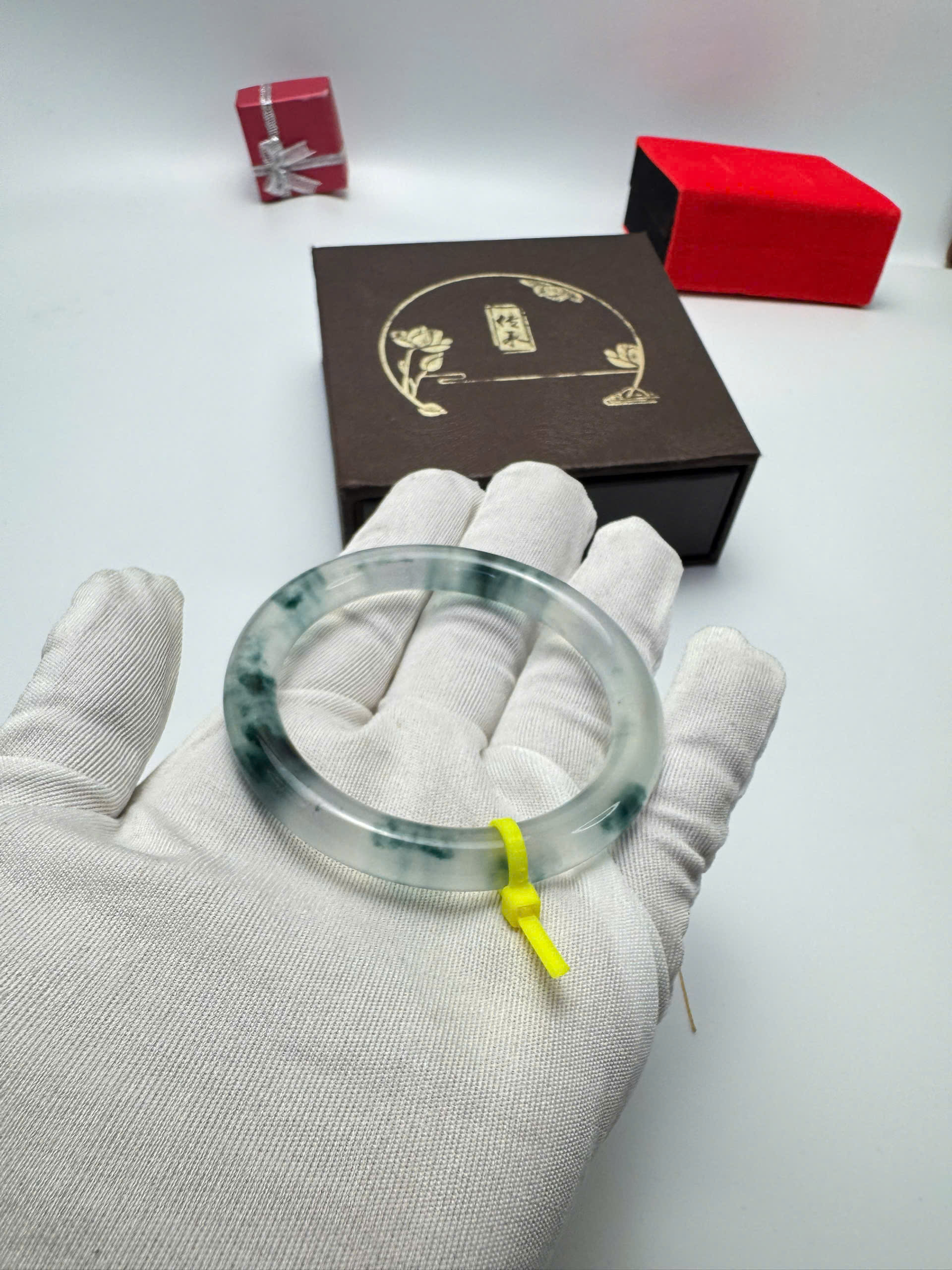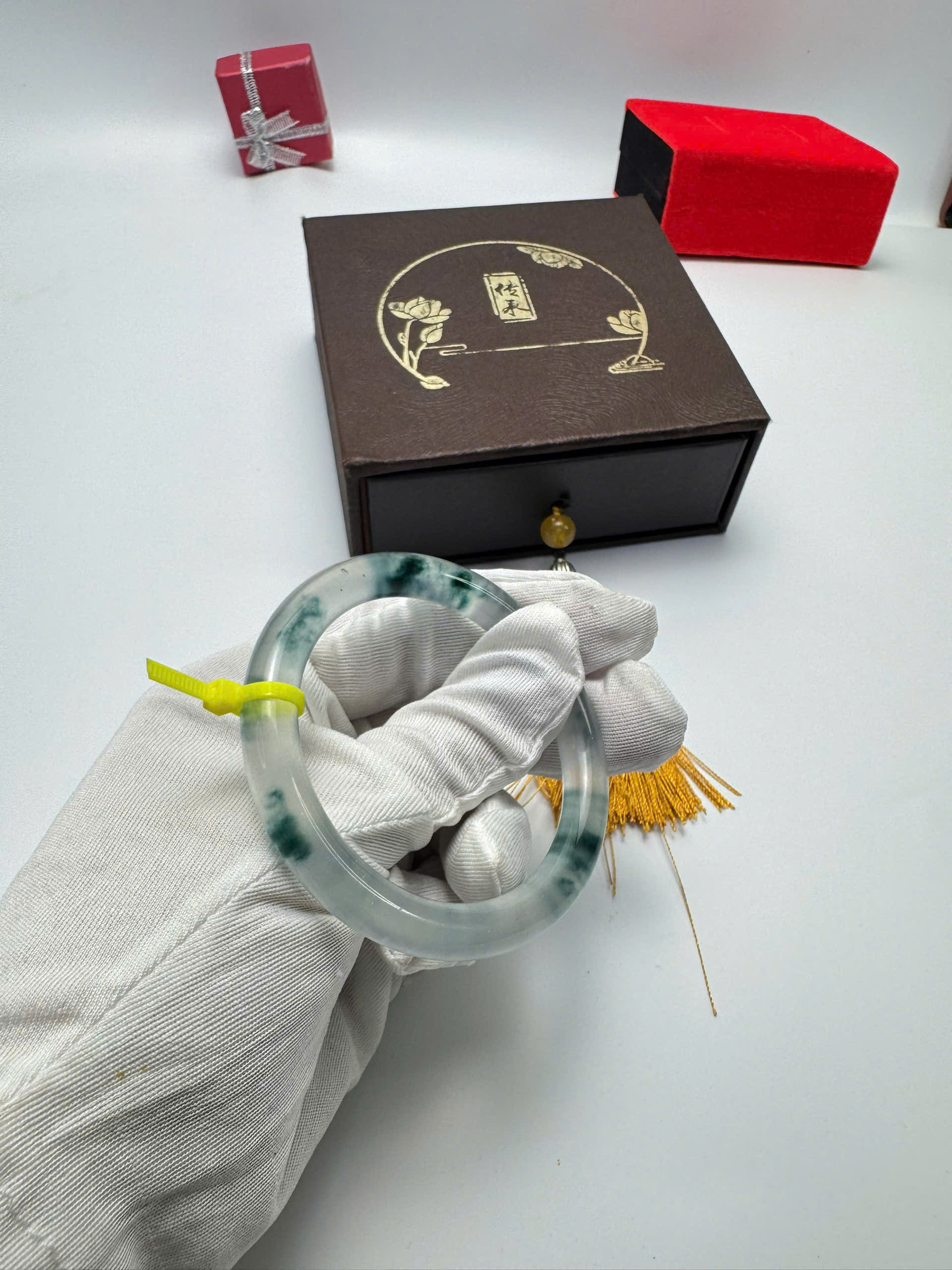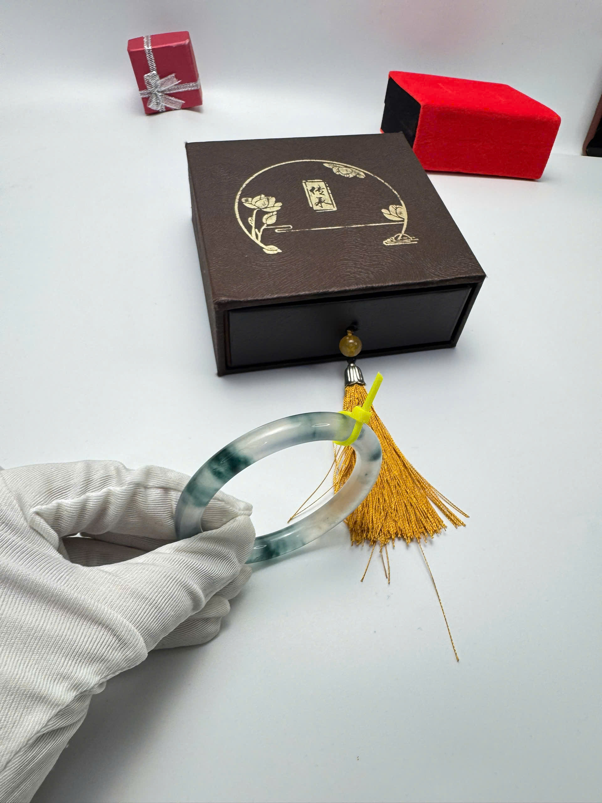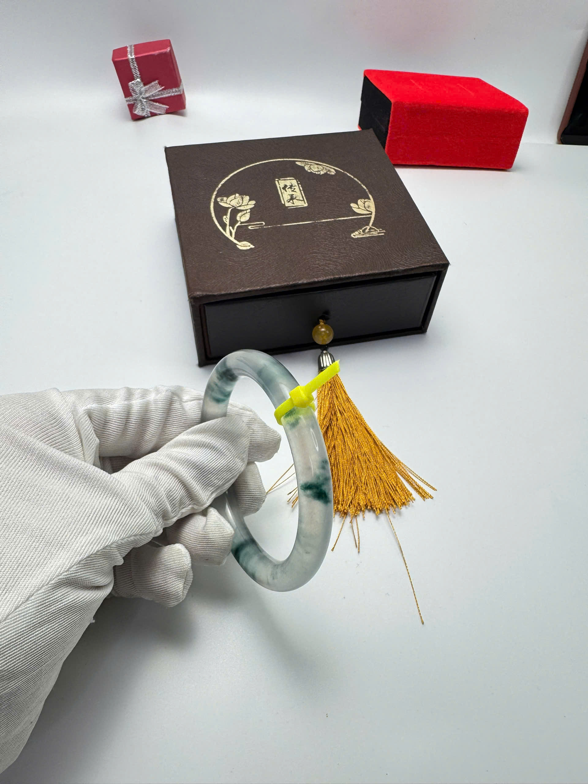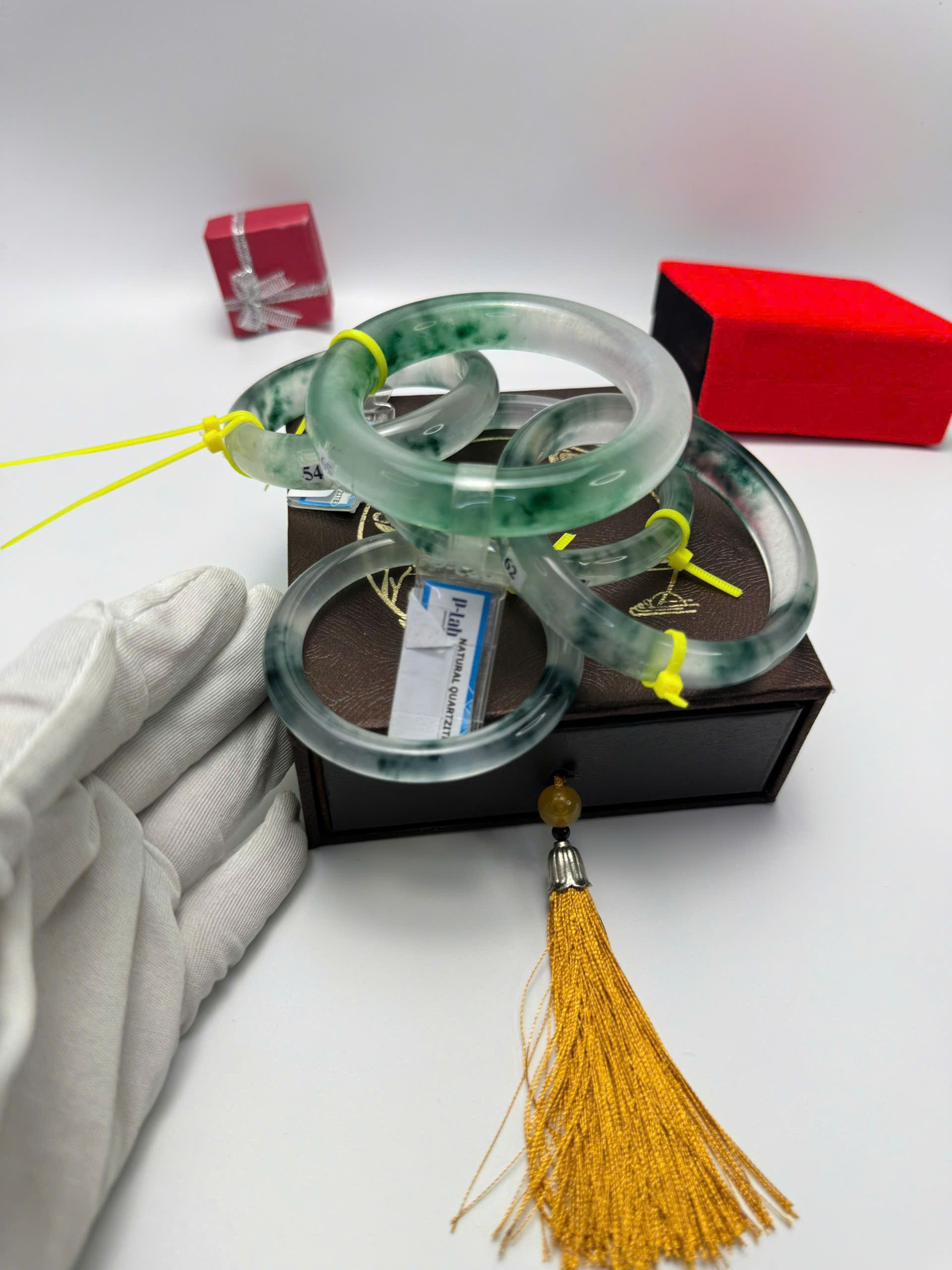 Vòng tay bảng khối đá ngọc Du Long xanh trắng ĐŨA NHỎ 54mm
