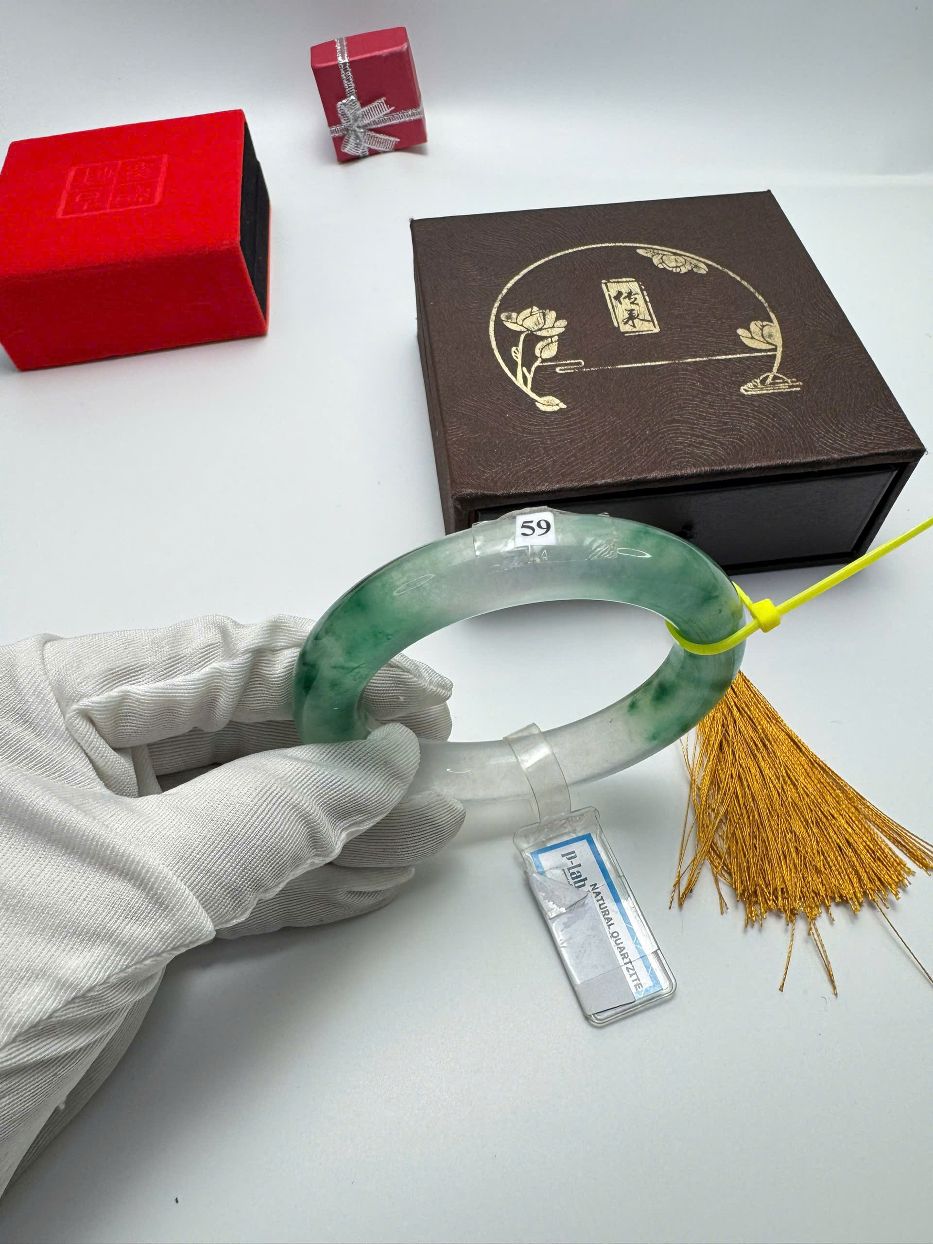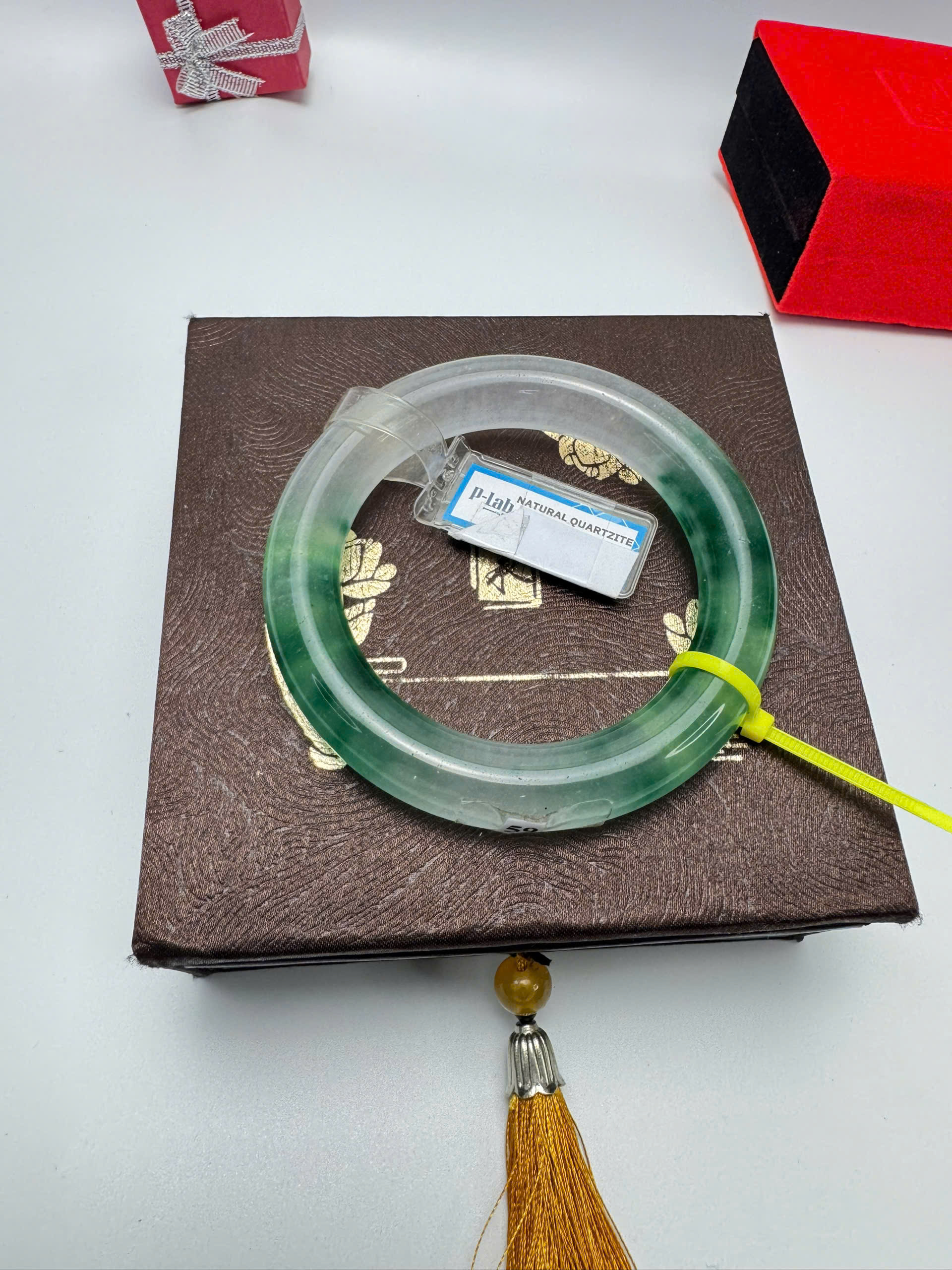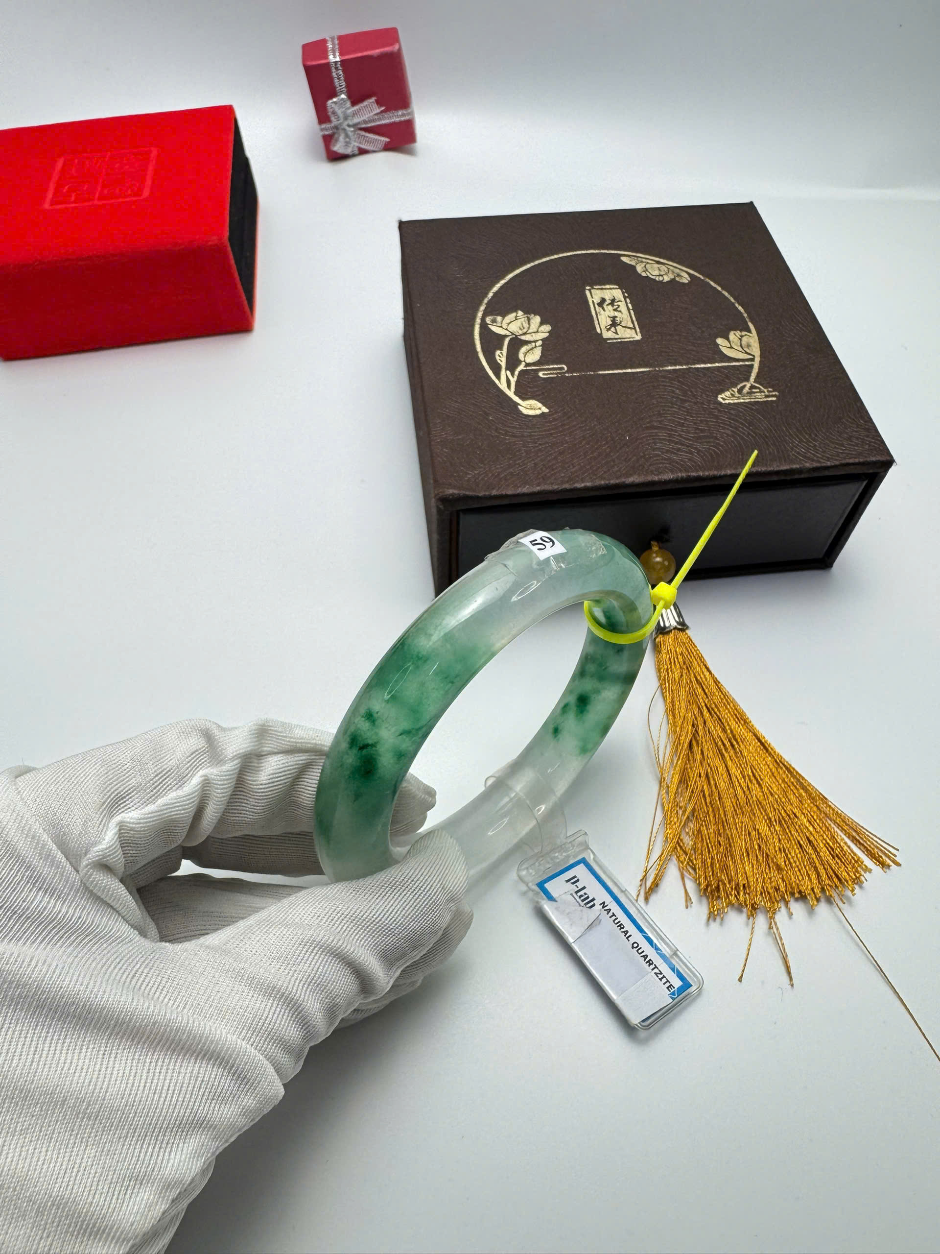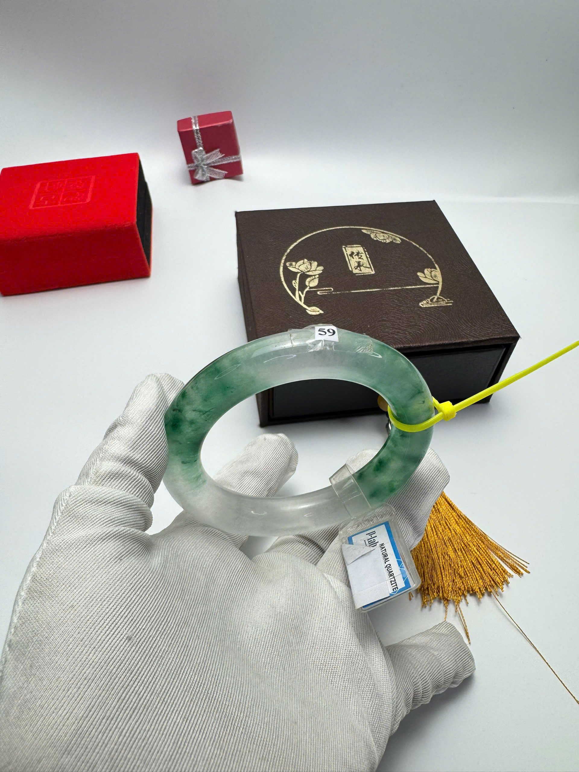 Vòng tay bảng khối đá ngọc Du Long xanh trắng Bảng đũa ú to 59mm kèm giấy kiểm định đá quý PNJ
